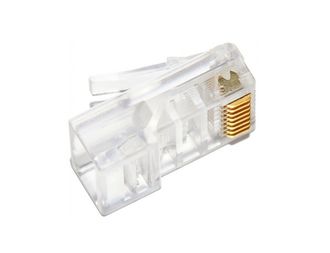 Разъем RJ-45 8P8C изготовлен из качественного пластика прозрачного цвета и имеет тонкий слой золотого напыления на ножах-контактах для улучшения контакта с жилами кабеля.